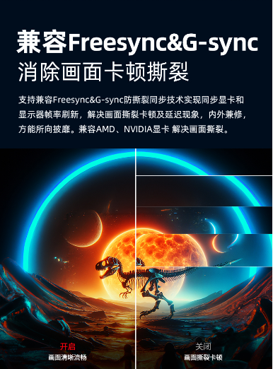 优派VX27G10 支持兼容Freesync & G-sync防撕裂同步技术,实现同步显卡和显示器帧率刷新,解决画面撕裂卡顿及延迟现象,内外兼修带来丝滑无缝的视觉享受。