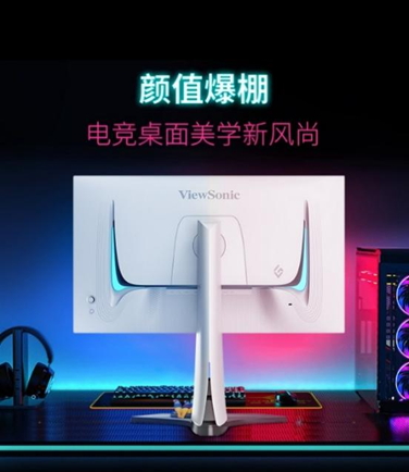 优派XG273-4K-OLED与星际系列打造的炫酷高颜值外观一脉相承,其机身采用星轨流线形设计,黑白撞色处理加上简洁白色后壳,以及独特的金属Y字形底座和多功能升级旋转底座,特别是在多种氛围灯效映衬下,浩瀚星际之旅的无限畅想瞬间点燃。