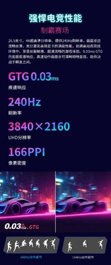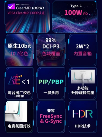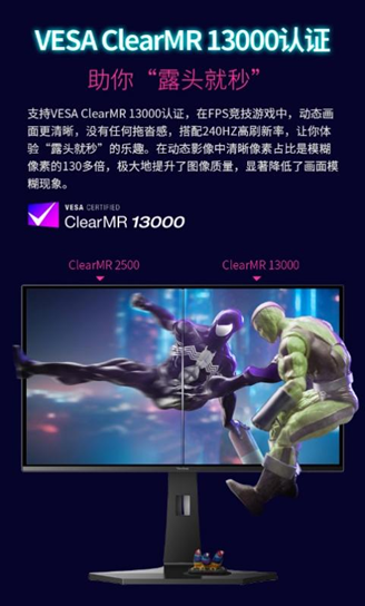 此外,优派XG273-4K-OLED还拥有VESA ClearMR 13000认证,尤其是在FPS竞技游戏中确保动态画面更清晰,没有任何拖沓感;搭配上超高刷新率,极大地提升了图像质量。