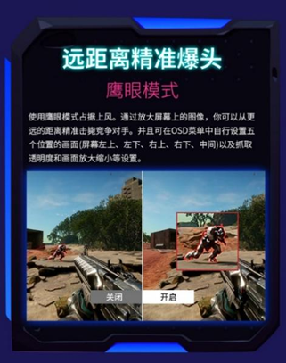 优派XG273-4K-OLED内置多种游戏模式快捷切换,适配FPS、MOBA、RPG等不同场景需求,帮助玩家掌控全局;其搭载的鹰眼、夜视与猫眼等优派独家游戏模式,助力玩家在不同竞技中实现“远距离精准爆头”、拥有黑暗中的“超能力”、无惧“伏地魔”等实战绝技,做到运筹帷幄轻松取胜。