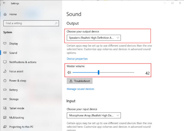 b. Check the setting of sound output device in Windows/Mac OS has been set to monitor.